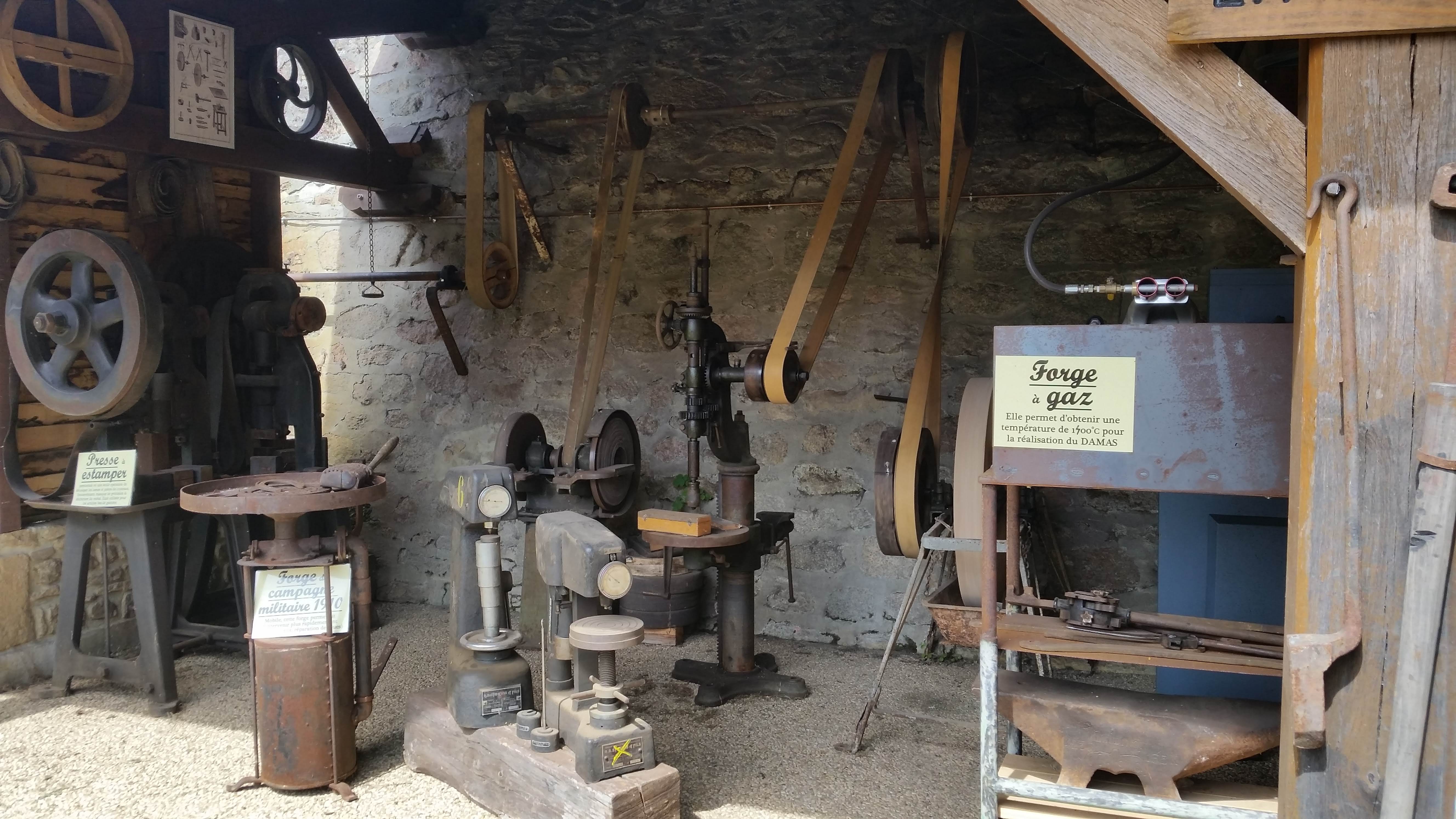 Forge et menuiserie avec démonstrations de forgeage de couteaux. Moulin à eau qui alimente la forge, le moulin à grains et les presses à huile de noix. L'entrée dans la boutique est gratuite, la visite du site est payante. Les couteaux sont de belles œuvres d'art allant de 60 euros à une petite fortune pour l'acier Damas.